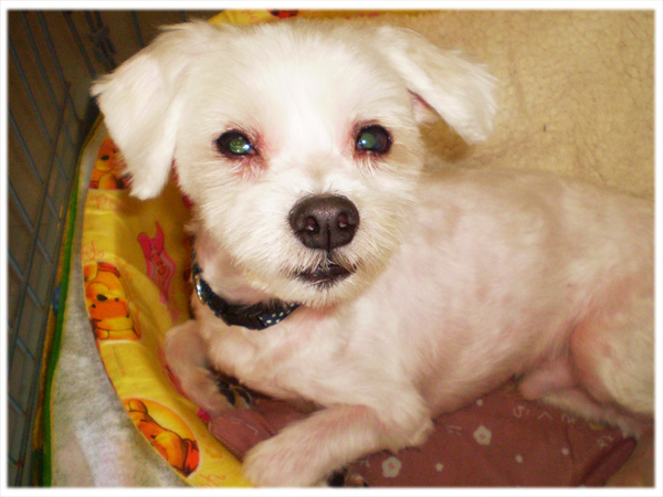 洗って毛を短く切ってもらい、本来の姿に戻った彼。